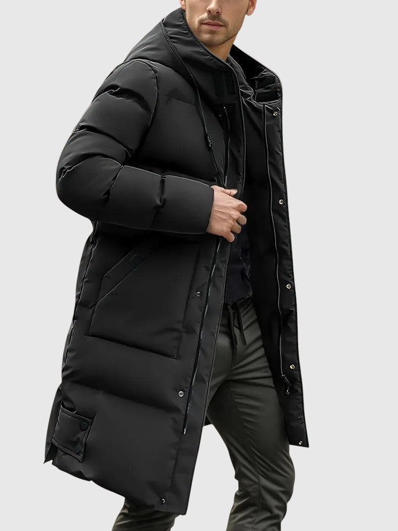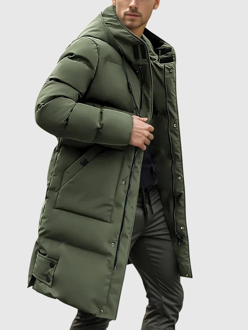 Jan – Podložena dolga jakna s kapuco Primer izdelka