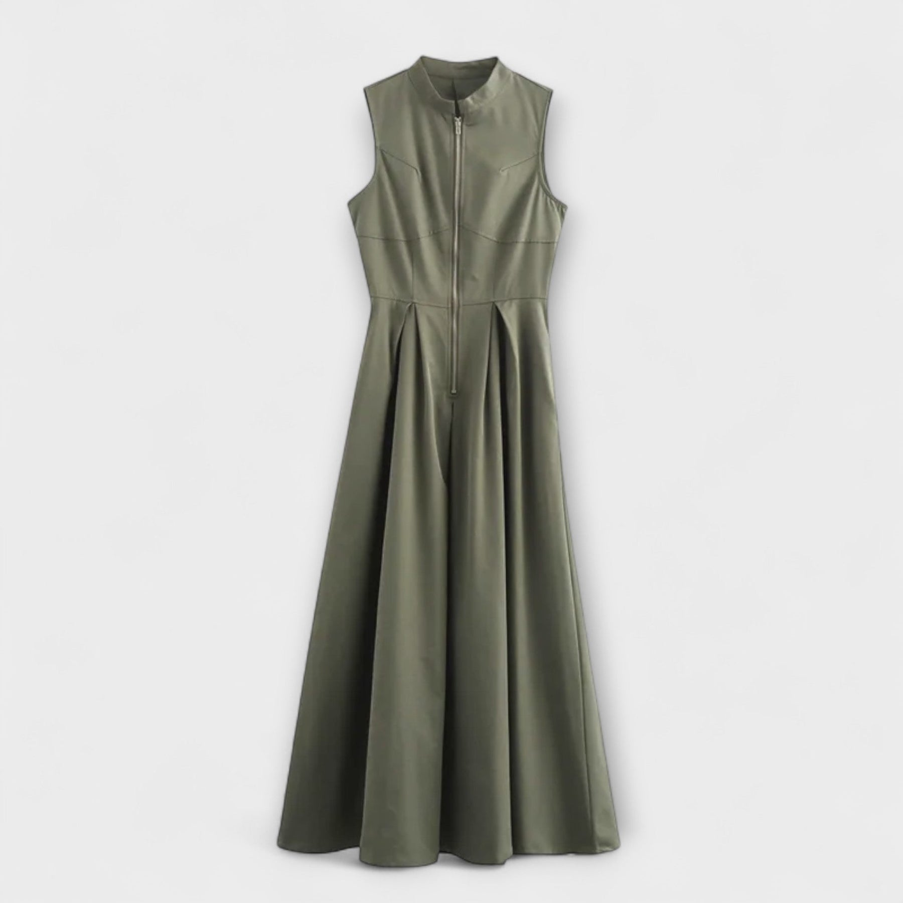 Kratka obleka brez rokavov s plisiranjem in tesnim krojem midi